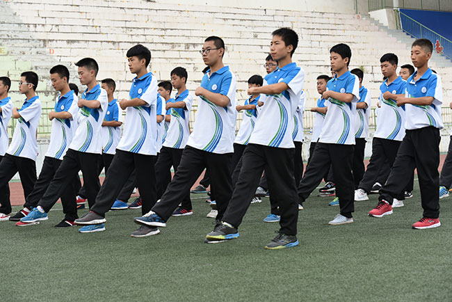 队列队形、毅力体能训练是军事技能训练的主要项目,每一个动作,在教官的亲自示范与指导下,队列整齐有序,气势磅礴,很好地培养了学生的集体意识、纪律观念、坚强意志和良好品质。